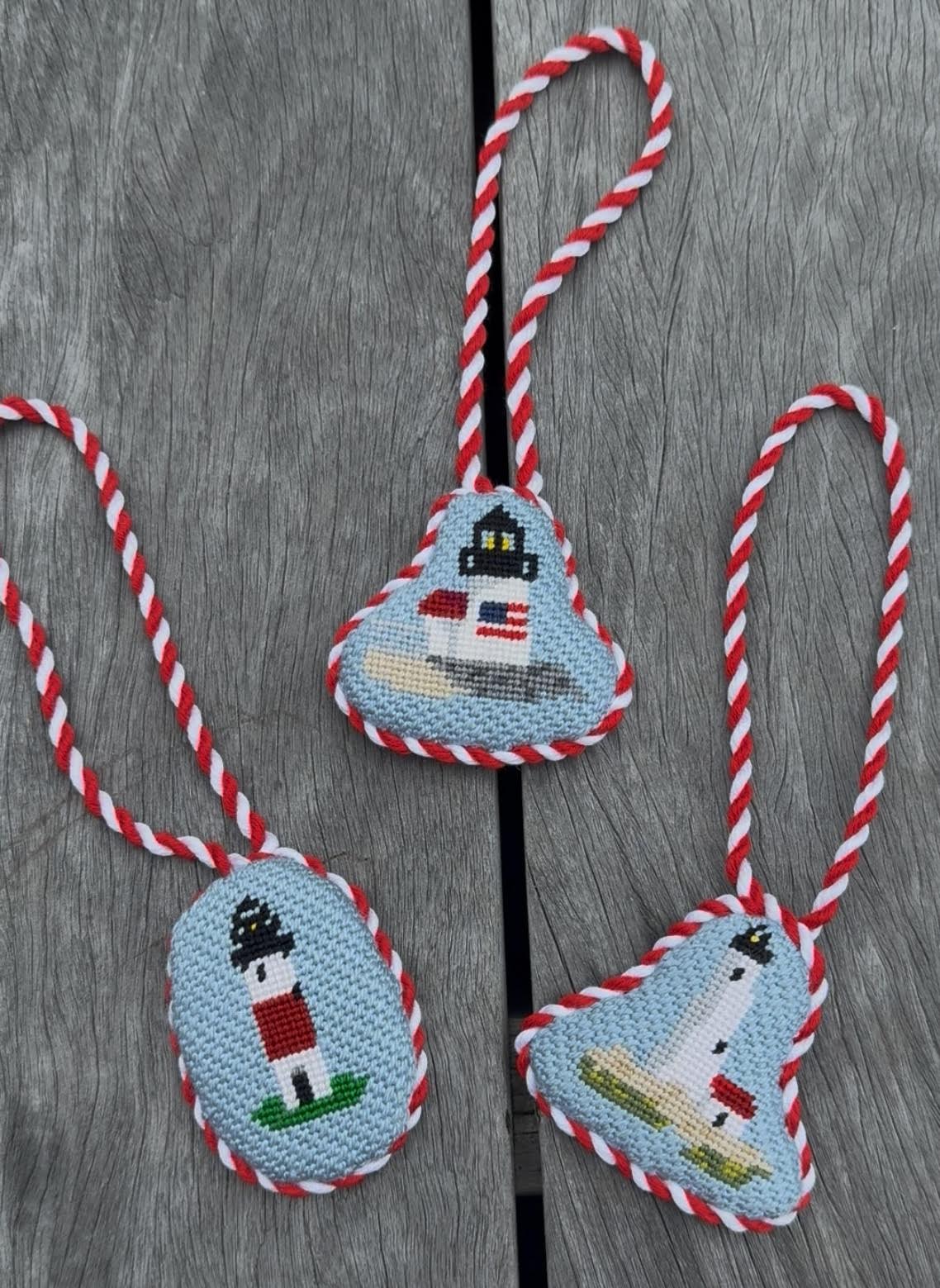 Our Mini Great Point Light canvas is coastal, classic, and full of Nantucket charm. This petite lighthouse design is a quick project, perfectly sized to finish as a bag charm, ornament, or thoughtful gift. Each canvas is hand-painted on 18 mesh for crisp details and smooth stitching, giving you a polished final piece.